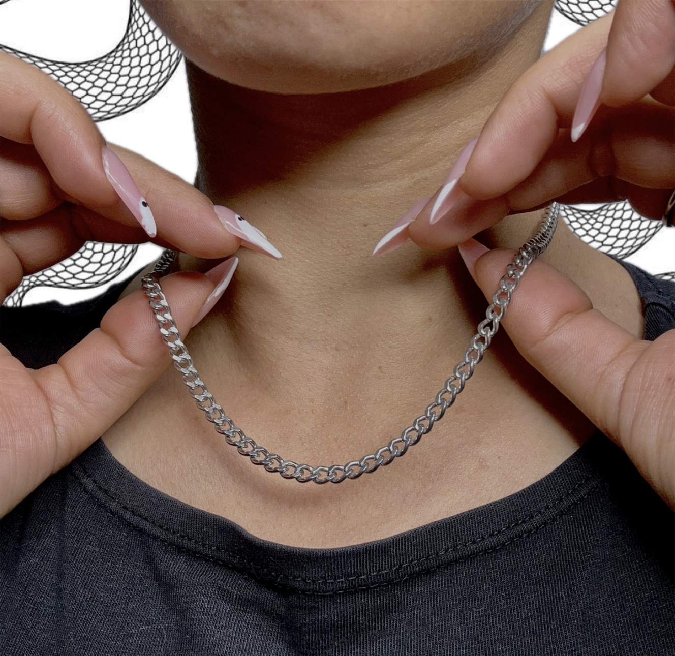 Cadena de eslabones pequeños unisex de acero inoxidable con cierre tradicional.