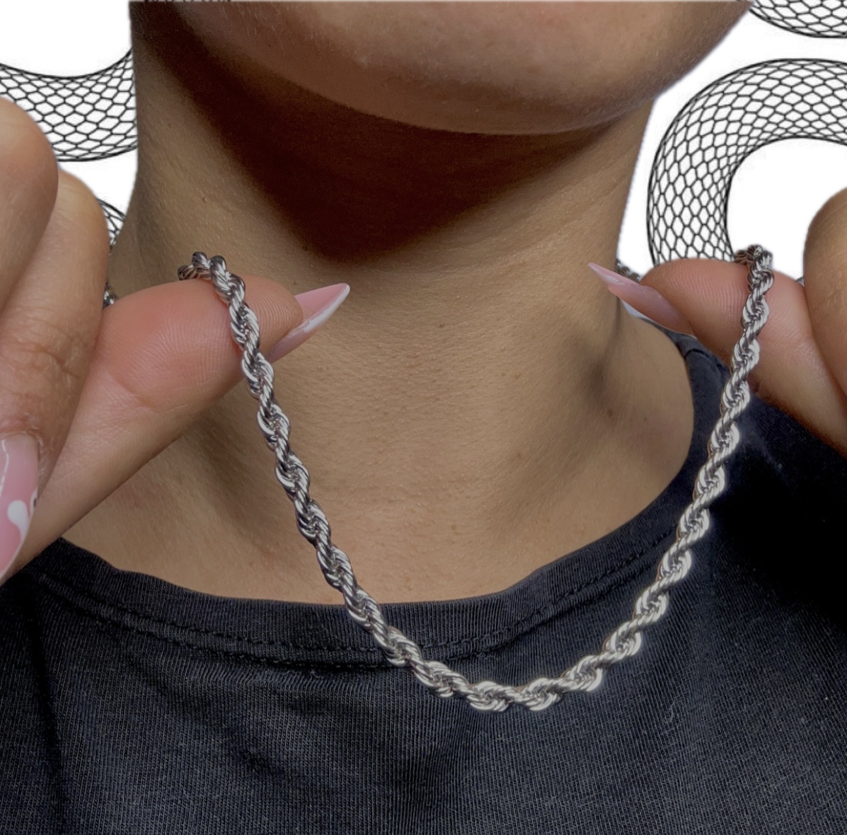 Cadena mediana unisex , de acero inoxidable con diseño trenzado y cierre tradicional .