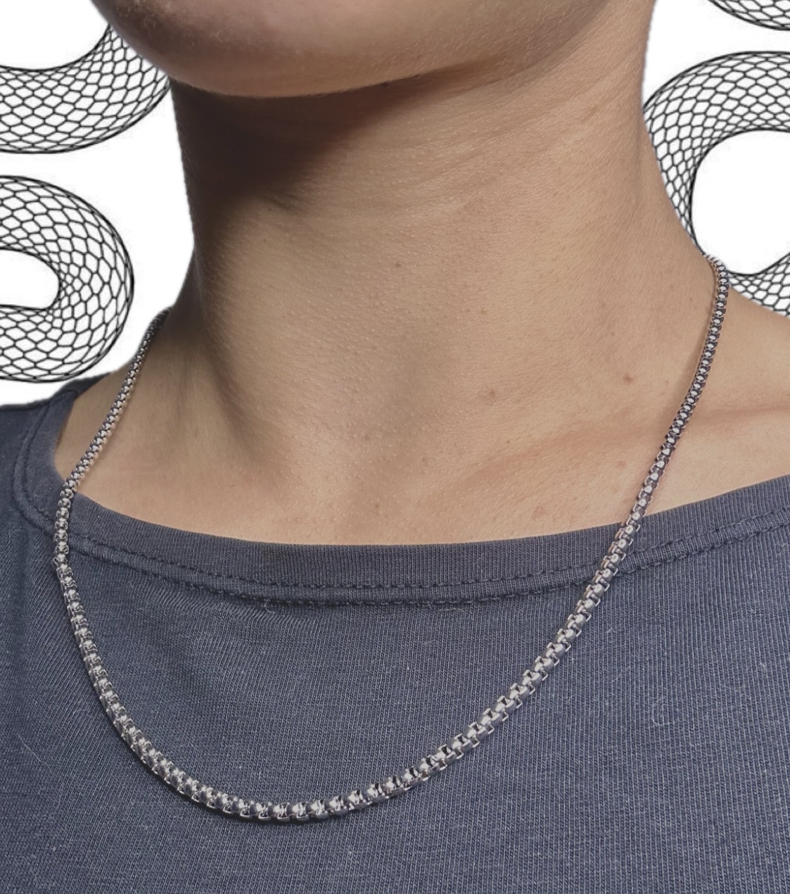 Cadena unisex de acero inoxidable con efecto bola y cierre tradicional .